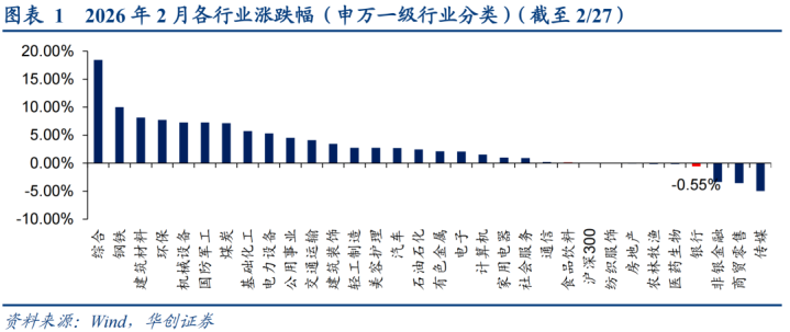 (一)实体产业崛起,2026年2月银行板块下降0.55%