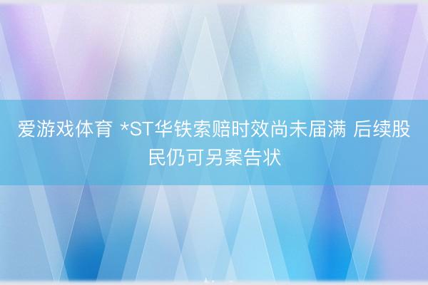 登录新浪财经APP 搜索【信披】搜检更多考评品级 受损股民可至新浪股民维权平台登记该公司维权:http://wq.finance.sina.com.cn/ 关切@新浪证券、微信关切新浪券商基金、百度搜索新浪股民维权、拜谒新浪财经客户端、新浪财经首页王人能找到咱们! 近日,曾代理投资者告赢130余家上市公司并获赔的浙江裕丰讼师事务所厉健讼师暗示,广东华铁邃晓高铁装备股份有限公司(原证券代码:000976,原证券简称:*ST华铁)证券造作敷陈索赔时效尚未届满,后续股民仍可照章索赔......