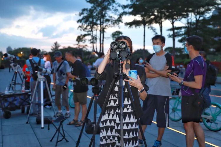 2021年5月26日,广州二沙岛东侧,不少市民不雅测月全食。