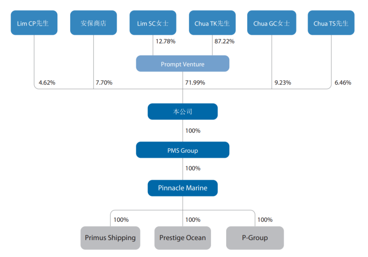 于重组前,PinnacleMarine由LimCP先生、安保商店、LimSC女士、ChuaTK先生、ChuaGC女士及ChuaTS先陌生别领有约4.62%、7.70%、9.22%、62.77%、9.23%及6.46%权益。