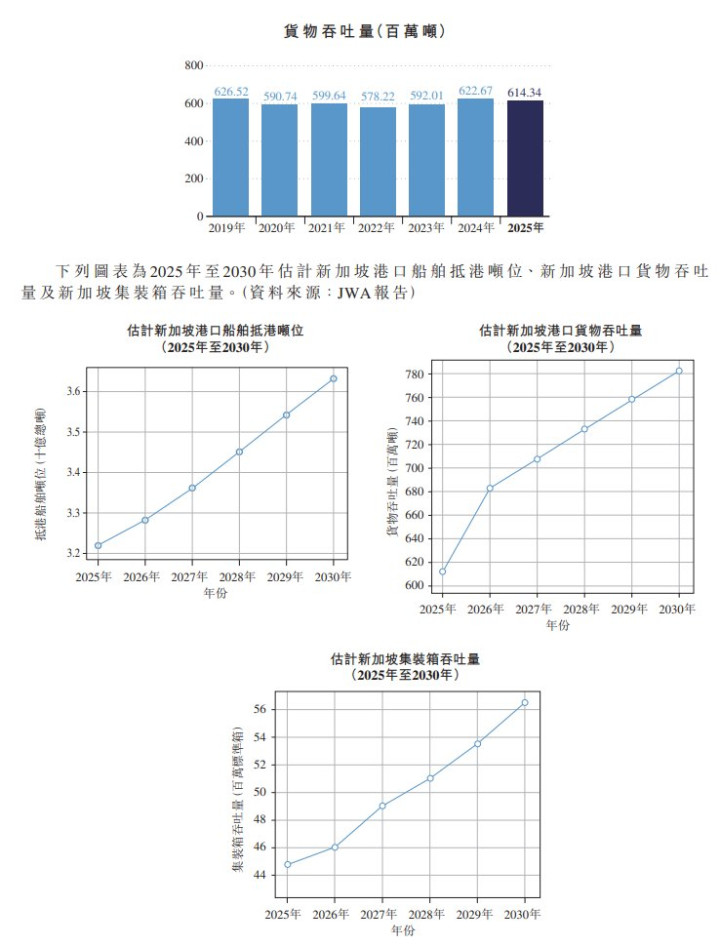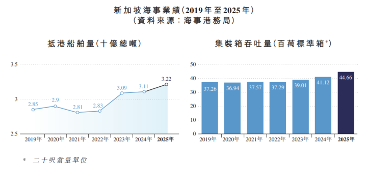 新加坡四肢海运要害的地位,体现于其口岸绩效方针中,包括船舶到港吨位、货品蒙胧量及集装箱蒙胧量。于2019年至2025年间,尽管民众交易环境出现短期波动,新加坡仍保管厚实的船舶流量与集装箱蒙胧量。于2025年,船舶到港总吨位达约32.2亿总吨,集装箱蒙胧量则达约4466万法度箱,均创下历史新高记录。