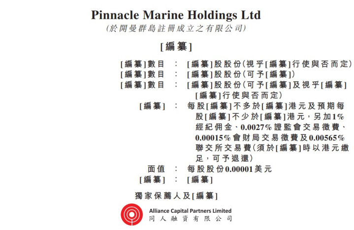 据港交所2月27日露出,PinnacleMarineHoldingsLtd向港交所主板递交上市央求书,同东谈主融资为其独家保荐东谈主。