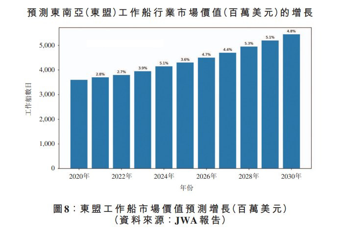于2025年,按船队限制计,使命船的市集增幅预测按同比3%增长,并于将来五年按约3%至5%的弧线捏续增长。