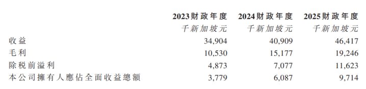 于2023财政年度、2024财政年度及2025财政年度,该公司达成公司领有东谈主应占全面收益总和差别为377.9万新加坡元、608.7万新加坡元、971.4万新加坡元。