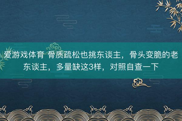 “王大姨,您才68岁,怎样轻轻摔一跤就骨折了呀?”病房里,照顾一边帮王秀兰整理被褥,一边忍不住问谈。 王大姨躺在床上,眉头皱得紧紧的,口吻里尽是憋闷和猜忌:“我也苦恼呢!年青的时辰干农活、扛重物都不在话下,这几年总认为浑身没劲儿,膝盖发软。昨天在小区散播,脚底下稍许滑了一下就站不住了,没思到骨头这样‘脆’。” 大夫查房时,听完王大姨的诉说,摇了摇头:“您这不是骨头‘脆’那么简便,省略率是骨质疏松找上门了。 许多老东谈主都认为骨质疏松是年岁大了的往时喜跃,其实否则,它更偏疼‘缺......