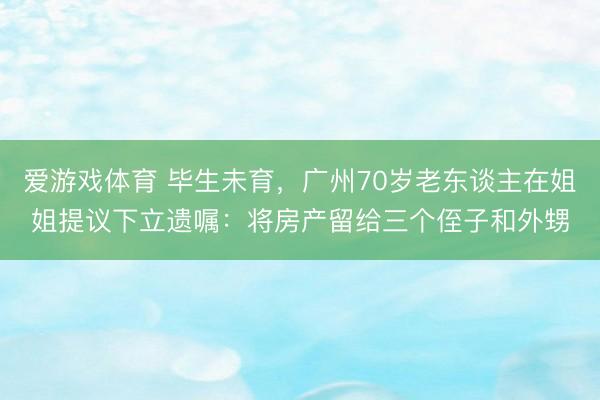 起首:广州日报 近日,老东谈主何先生(假名)来到中华遗嘱库广州越秀分库立下遗嘱,准备将名下房产留给三个侄子和外甥。 开云app在线体育官网 据了解,何先生本年70岁,与夫人未生养儿女。几年前,夫人因病死一火。何先新兄弟姐妹共4东谈主,他年龄最小。 “我姐姐请示我,照旧要立个遗嘱,以防万一。”何先生说,几个哥哥姐姐年龄也大了,如若将他名下房产按法定承袭科罚也不太好,恰巧他们每家一个孩子,我方名下的房产将来由这3东谈主平分,也适应我方的意愿。 谈到我方的晚年生涯,何先生说,几个孩......