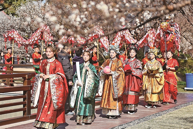 浙江省嘉兴市南湖区子城古迹公园,演员在进行传统文化饰演。新华社发