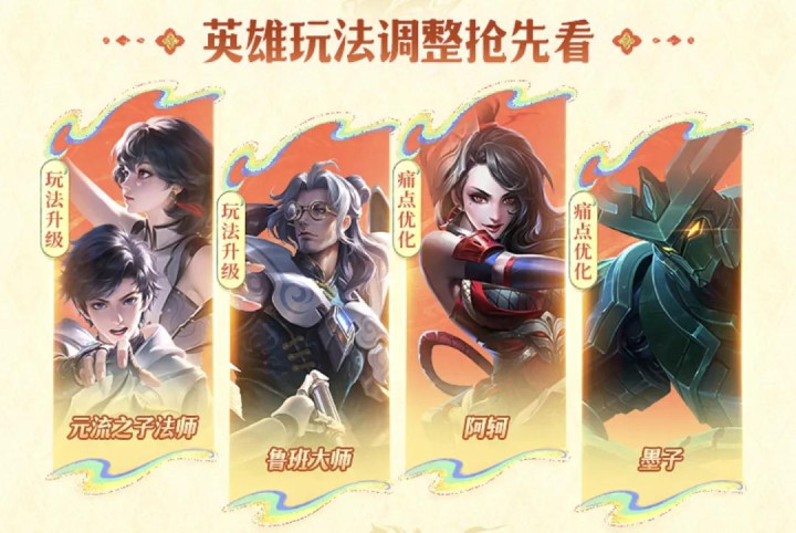 字据官方所说,亚搏app在2.23的直播中,会有以上4位好汉迎来加强,离别是元法、鲁班群众、阿轲和墨子。