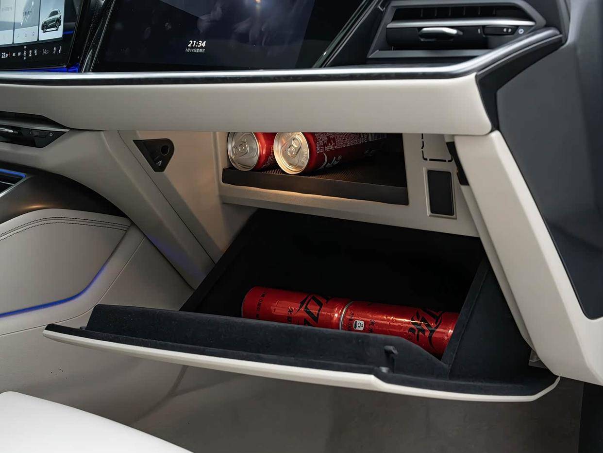 该车全系标配40W手机无线充电面板,在副驾抽屉上方,还有一个隐蔽的储物空间,要是你有私租金的话,这倒是个好行止,前提是别让你的另一半知说念。