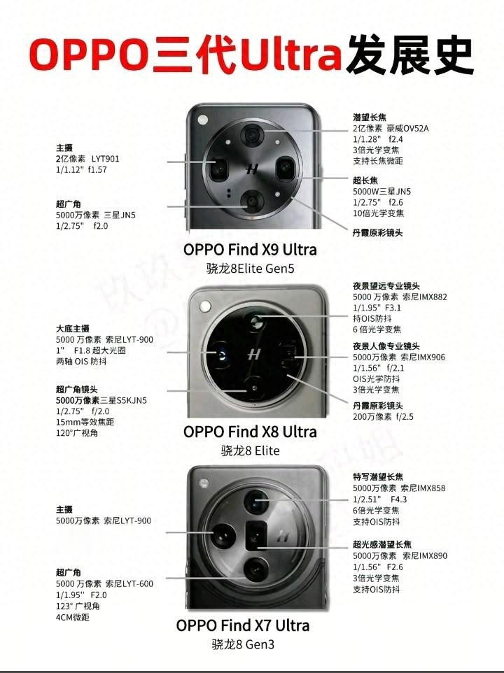 2026年,OPPO Find系列Ultra机型迎来了新一轮的时间爆发,从Find X7 Ultra到Find X9 Ultra,这三代顶级旗舰不仅代表了OPPO在挪动影像限制的最高水准,更见证了智高手机影像系统从双潜望普及到超高倍率变焦,再到极致感光与像素破损的竣工进化史。通过对比这三款机型后置录像头的防御设立参数,咱们不错明晰地看到OPPO在传感器选型、光学变焦能力以及影像算法上的迭代逻辑与时间贪念。