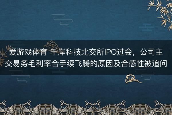 北京商报讯(记者 王蔓蕾)3月27日晚间,北交所官网泄露,深圳千岸科技股份有限公司(以下简称\"千岸科技\")IPO当日上会得回通过。 据了解,千岸科技是一家从事自有品牌居品研发、计算并主要通过电商平台和自营网站进行销售的高新时刻企业。公司IPO于2025年6月得回受理,曩昔7月插足问询阶段。 本次冲击上市,千岸科技拟召募资金约4.8亿元。 在上市委会议现场,上市委条件千岸科技诠释主交易务毛利率合手续飞腾的原因及合感性;诠释毛利率、净利率与同业业可比公司变动趋势不一致的原因及......